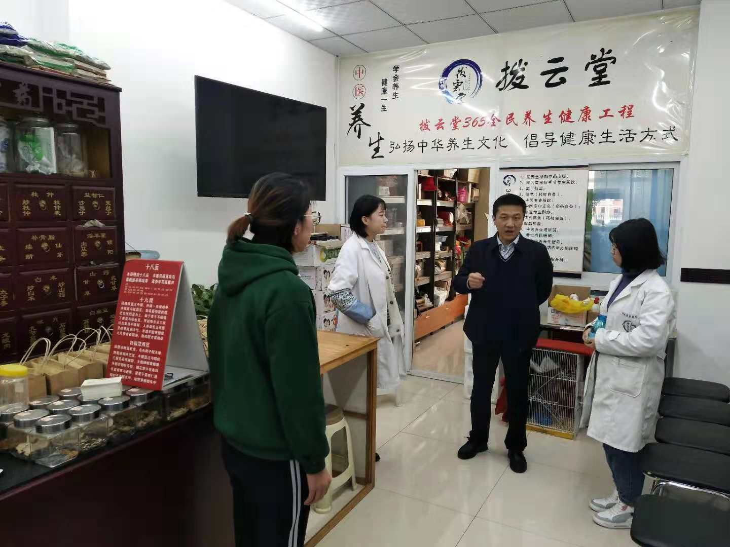 10月25日下午,中药系党总支书记彭志强和系副主任吕建军深入到拨云堂国医馆看望慰问我系综合实训学生。
