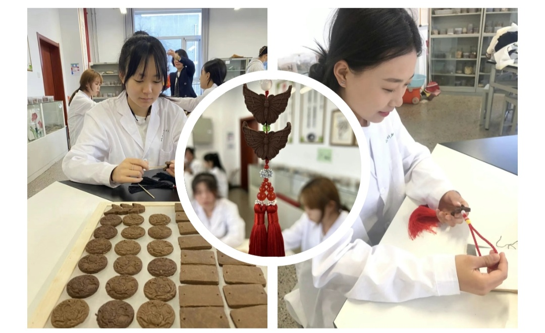 每一块香牌经过同学们的调配、和泥、醒发、制形、阴干、打磨、穿穗等七个步骤,从各个方面保证香牌的精致的内涵和品质,也因此与香囊相较而言,香牌的留香和扩香时间更为长久。制作香牌是一种传承,也是与传统文化的一种交流。传统的文化需要和现代人的审美、生活融合到一起,才能更好的弘扬、发展。