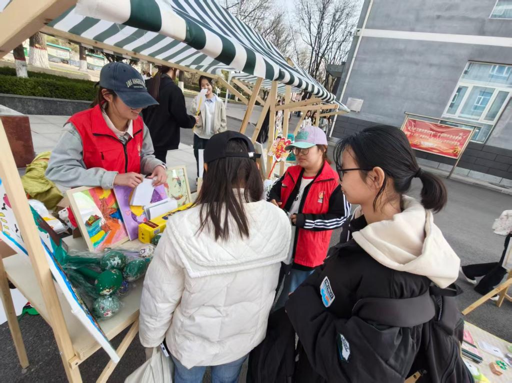 3月24日至25日,校园专场义卖在李时珍广场温情拉开帷幕,现场暖意融融、秩序井然,两大特色区域让爱心在校园里肆意流淌。特殊儿童手绘作品展区里,一幅幅纯真质朴的绘画、一个个创意十足的手绘帆布包,引得师生们纷纷驻足,大家没有丝毫犹豫,以“以买代帮”的方式默默认购,用一份份小小的善意,肯定特殊孩子们的创作与努力,让包容与关爱填满校园。另一边的师生爱心义卖区,闲置书籍、精致文具、实用生活用品等捐赠物品整齐摆放,同学们化身暖心摊主,热情又礼貌地推介介绍,路过的师生主动挑选、慷慨解囊,让闲置物品化作公益力量,也让助残的种子在每个人心中生根发芽。