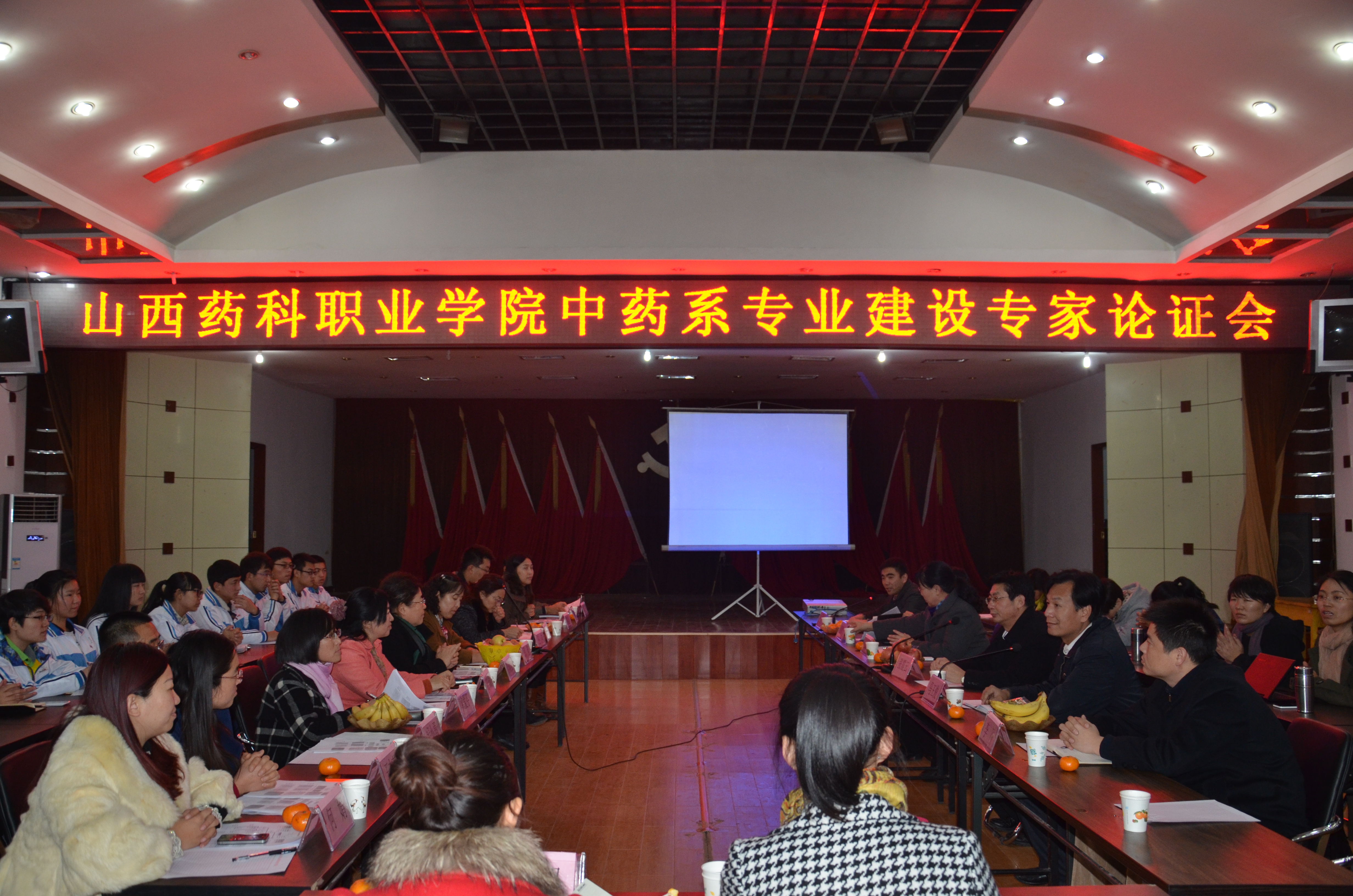 2014年11月22日下午,中药系在学院文体活动中心召开专业建设专家论证会,山西省食品药品检验所药理室主任张蕻、太原市食品药品检验所所长李菊花、山西华康药业股份有限公司技术部部长李廷灵、山西仁和大药房连锁有限责任公司副总经理李晓波等14位合作单位领导和专家应邀参加了会议。学院党委委员、副院长张震云,教务处长王仙芝,系党总支书记马王俊,系主任蔡翠芳,系党总支副书记李刚,系分团委书记、各专业教研室主任,辅导员,部分教师以及学生代表参加了会议,会议由系副主任吕建军主持。