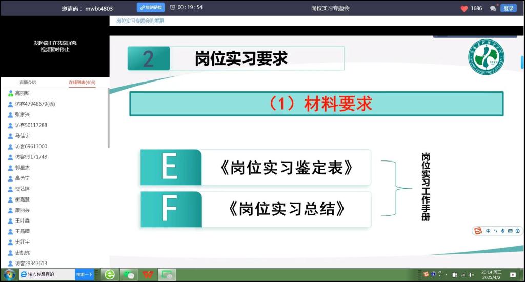 为扎实做好2025届毕业生实习就业工作,4月2日晚,中药系通过学习通线上会议形式组织召开2025届毕业生实习就业工作推进会。会议主要围绕实习管理、实习安全和高质量就业等内容开展,系班子成员、各教研室主任和毕业班辅导员参加会议。