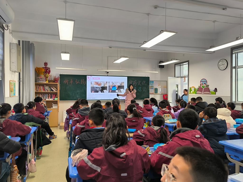 活动伊始,宋老师以“身边的中药朋友”为题开启科普讲座,她从同学们熟悉的生姜、大枣、菊花等食材入手,讲解其药用价值与生活应用,引发孩子们的好奇心,让原本陌生的中医药知识变得通俗易懂、贴近生活。
