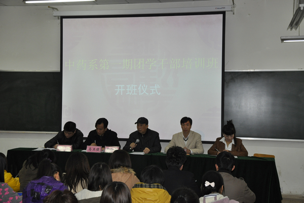 2012年3月7日下午,中药系在东教学楼二楼二阶举行了第一期团学干部培训班开班启动仪式。出席启动仪式的有学院副院长尹士优、学生处处长原超、中药系党总支书记马王俊、副书记李刚以及中药系分团委副书记李晶。中药系有180余名团学干部参加了启动仪式。