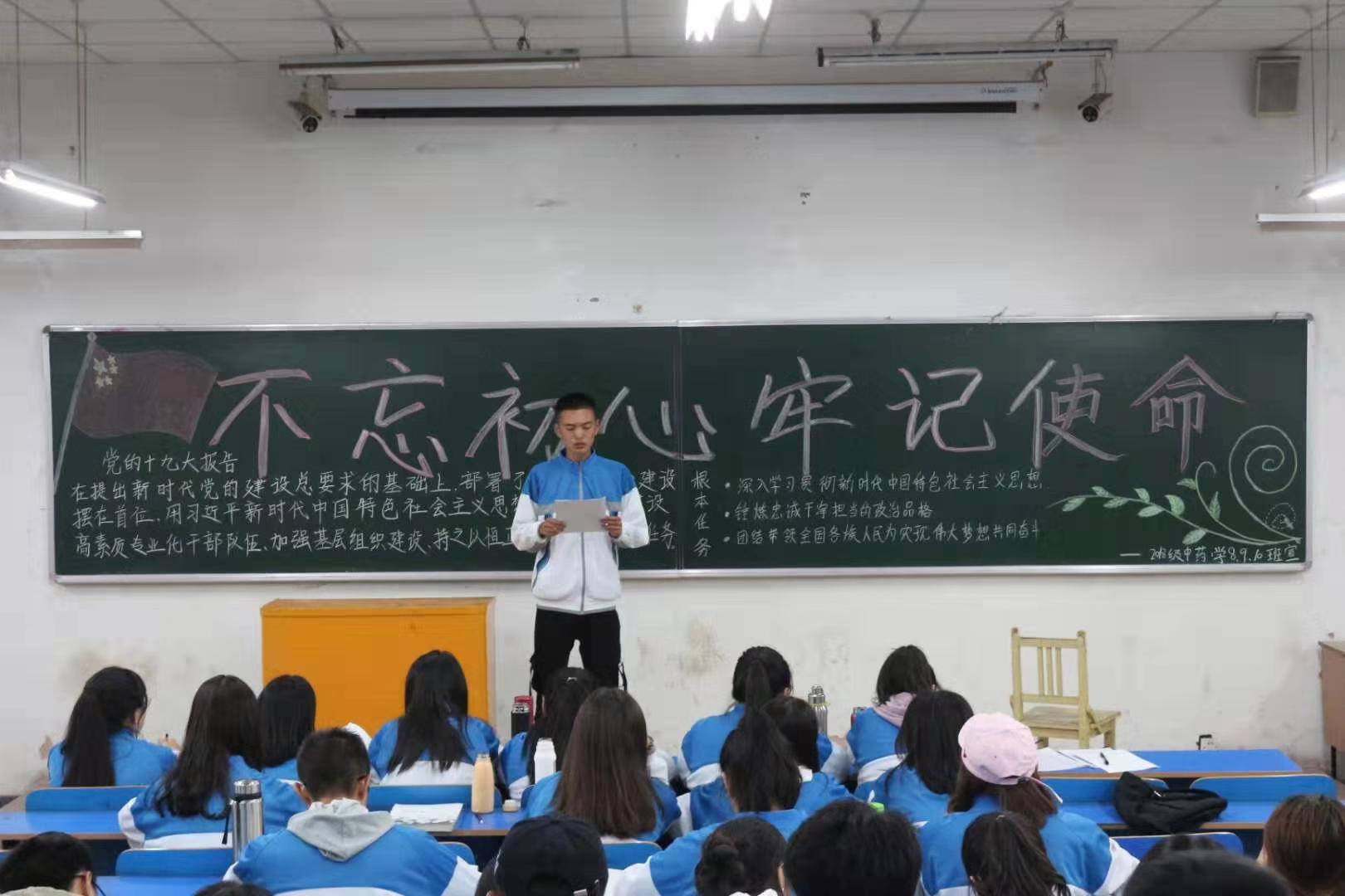 首先,各班团支书组织同学们认真学习了开展“不忘初心、牢记使命”主题教育的重大意义和目标任务,深刻领会新时代中国特色社会主义思想的精神实质和丰富内涵;学习领会党的十九大精神,加强同学们对党的认识,牢记使命勇担当,激发广大共青团员的先进性和使命感,坚定永远跟党走的信念,倡议同学们时刻注意自己的言行举止,充分发挥团员在青年中的表率作用。随后,在团支书的组织下,同学们争先进行讨论,表达自己对十九大精神的深刻理解,同学们边听边认真地做笔记。