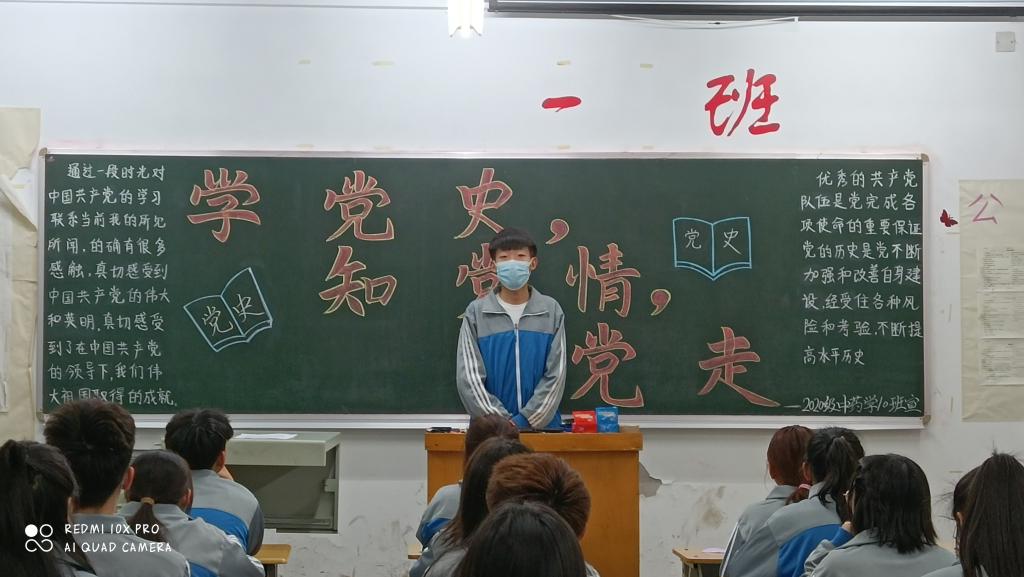为庆祝中国共产党成立一百周年,进一步提高同学们对党史学习的积极性。3月25日,中药系组织各班级开展了“学党史、知党情、跟党走”主题班会。