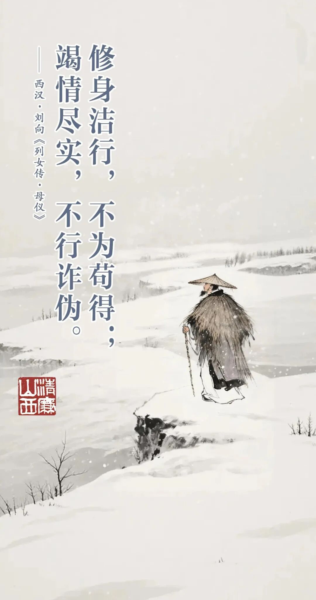 这句话是出自西汉刘向《列女传·母仪》,意为士人君子当躬身修持自身品性,坚守廉洁端正的行为准则,绝不谋取不正当、非分之利;待人处世要竭尽心力、秉持赤诚,恪守真实本分,始终做到不欺诈、不虚伪。这句话既是中华传统文化中个人修身立德的基本准则,更是为官从政者廉洁奉公、求真务实的核心要求,彰显出清正守心、诚实质朴的精神内核。