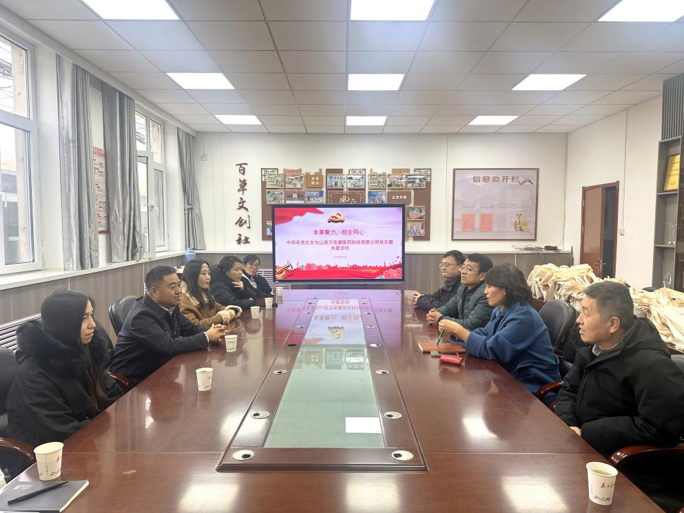 活动伊始,中药系党总支与药旭亮董事长一行在120会议室举行党建共建交流座谈会。双方围绕党建工作创新、产教融合路径、人才培养模式等议题深入研讨,就搭建校企党建联建长效机制、推进实习实训基地共建等达成共识。会上,药旭亮董事长代表山西万佳康医药有限公司,向中药系全体教职工赠送了精心准备的礼品,以实际行动回馈母校培育之恩,彰显了校友与母校之间深厚的情谊纽带。