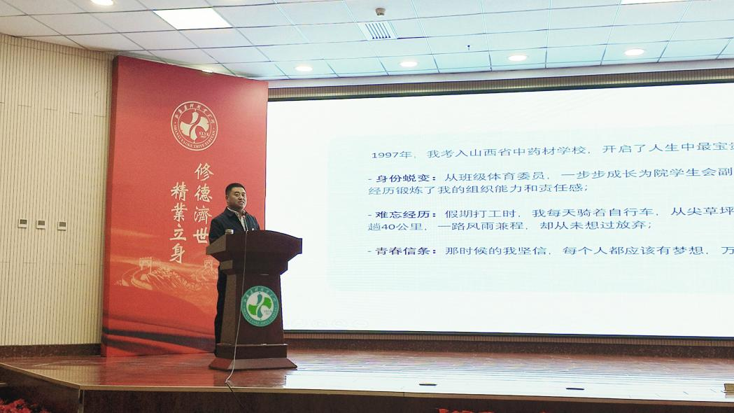 为深化校企共建,发挥优秀校友榜样示范作用,助力中药学子成长成才,2025年12月9日,中药系特邀山西万佳康医药有限公司董事长、优秀校友药旭亮重返母校,开展宣讲活动,为校企协同发展注入新动能,为青年学子成长成才点亮明灯。