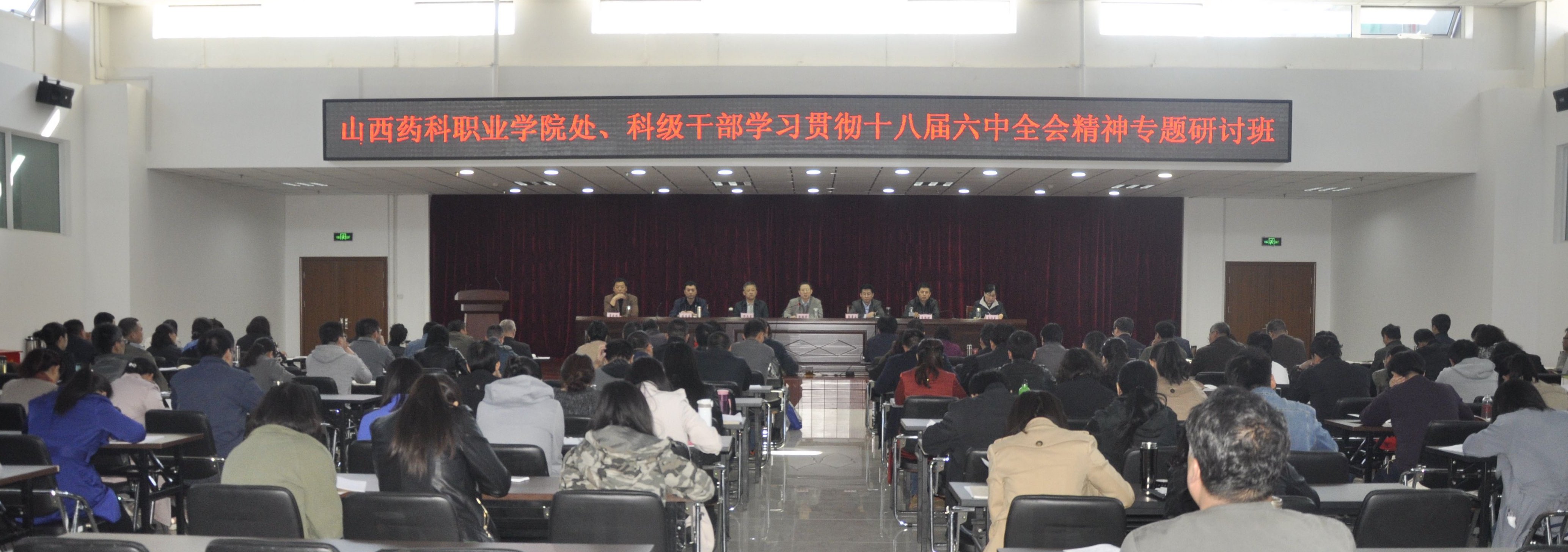 按照学院党委的统一部署,4月21至22日,学院举办处、科级干部学习贯彻十八届六中全会精神专题研讨班。学院领导、全体处、科级干部、教研室主任、教师党支部书记“双带头人”、思政部教师、专兼职辅导员共计150余人参加了专题研讨班。