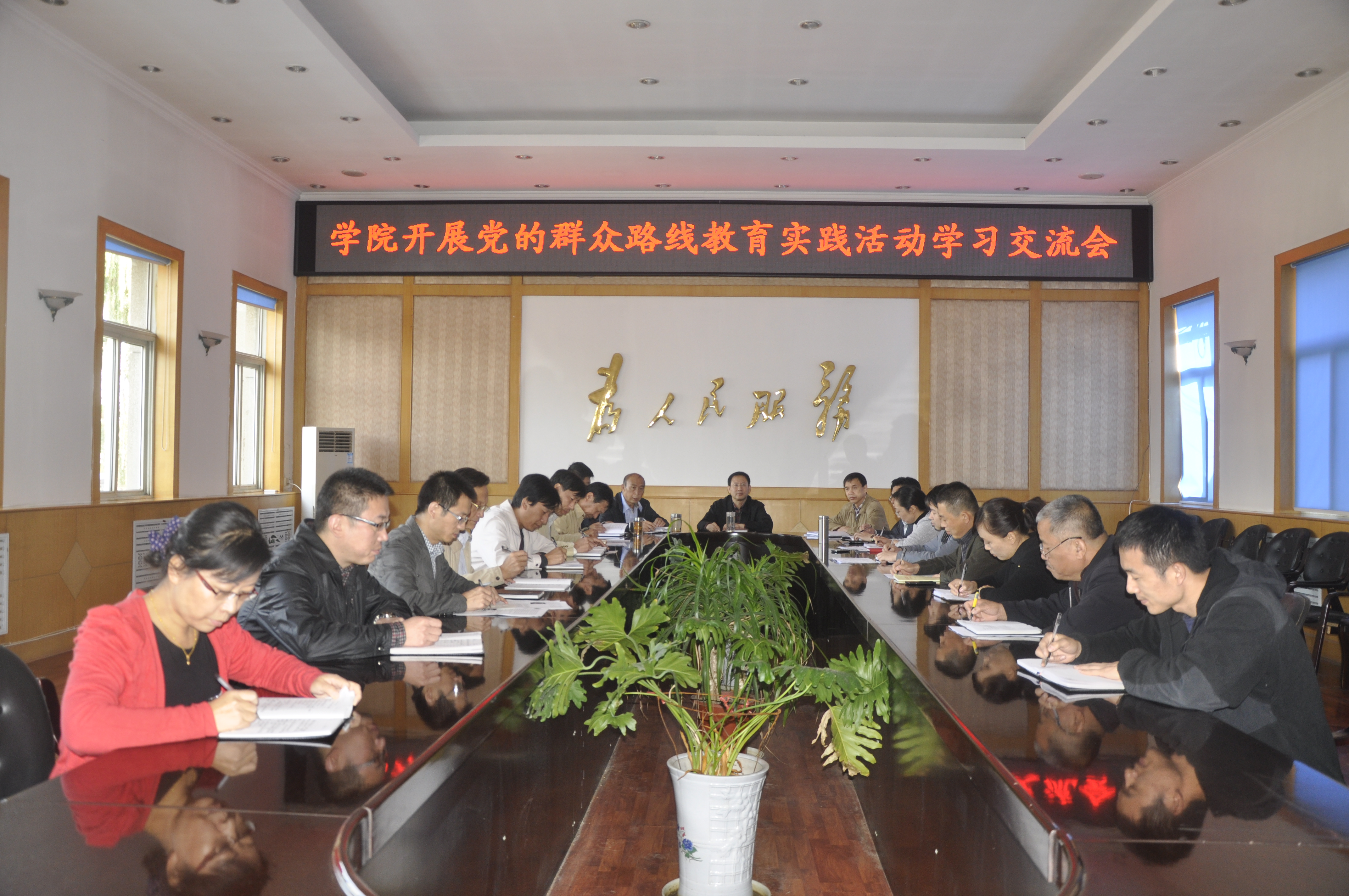 10月11日,学院在大会议室召开党的群众路线教育实践活动学习交流会。学院教育实践活动领导小组及办公室成员和各总支、直属支部书记参加交流会。会议由党委书记、党的群众路线教育实践活动领导小组组长张瑞芳同志主持。