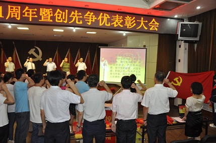 张晋永同志和葛蕾同志分别代表获奖的先进基层党组织和优秀共产党员做了发言。之后举行了新党员入党宣誓和老党员重温入党誓词仪式,全体党员郑重宣誓,为共产主义奋斗终身。