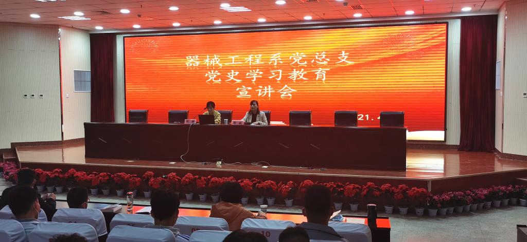为深入学习贯彻习近平总书记在党史学习教育动员大会上的重要讲话精神,在师生中扎实开展党史学习教育,按照学院党史学习教育工作安排,4月25日下午,器械工程系党总支邀请学院思政理论教学研究部陈琪老师在学院报告厅为全系师生开展题目为《学习百年史 奋斗新征程》的党史学习教育专题宣讲。