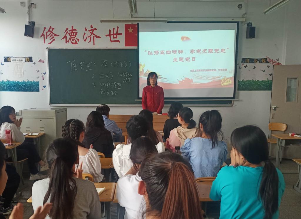 为深入开展党史学习教育,引导广大师生党员弘扬五四精神,学习党的历史,传承红色基因,坚定理想信念,凝聚青春力量,树牢共产主义远大理想和中国特色社会主义共同理想,以昂扬向上的精神状态迎接中国共产党成立 100 周年。根据学院党委统一部署和系总支安排,2021年5月24日,食品工程系党总支教师支部、学生支部联合开展“弘扬五四精神,学党史跟党走”主题党日活动,全体党员、学生入党积极分子参会。