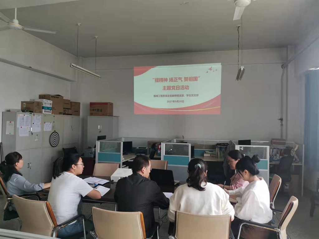 为庆祝中华人民共和国成立72周年,进一步激发党员师生爱党爱国之情,树立强国报国之志,增强历史责任感与使命感,深入推进党史学习教育,9月30日上午,器械工程系党总支教师党支部、学生党支部联合开展了“提精神 扬正气 赞祖国”主题党日活动。
