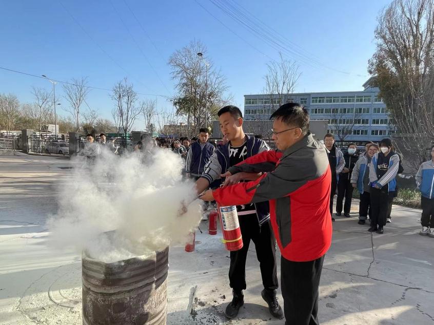 现场党员教师给学生讲解了在校内不同场所发现火情的临场处置措施,尤其是实验室各类不同情况火灾的防范和早期扑灭方法,手把手交会现场每名学生正确使用灭火器。
