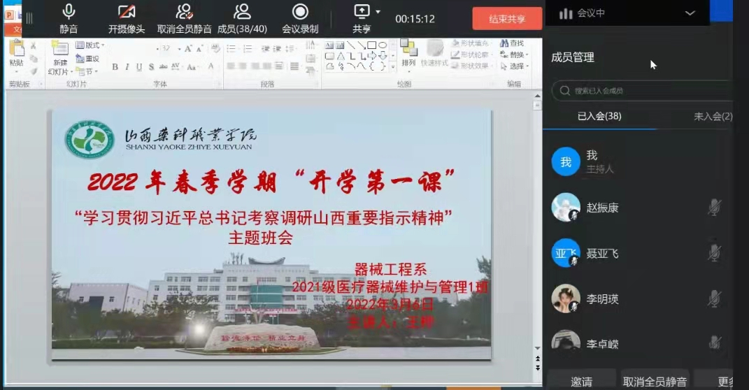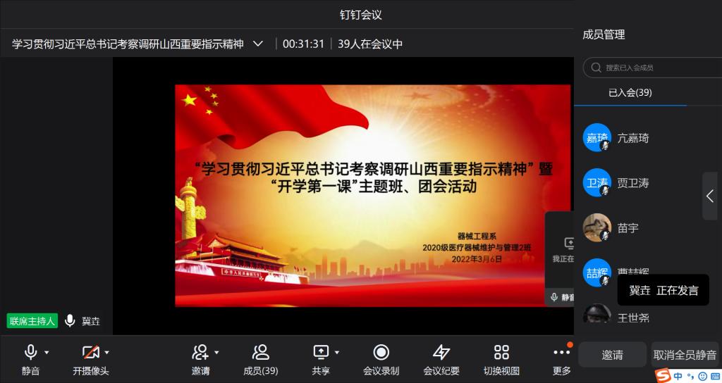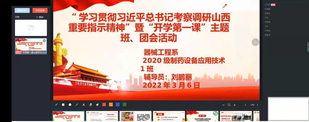 为在我系学生中深入学习贯彻习近平总书记考察调研山西重要指示精神,2022年3月5日和6日,器械工程系各班级、各团支部分别开展了“学习贯彻习近平总书记考察调研山西重要指示精神”暨“开学第一课”主题班、团会活动。