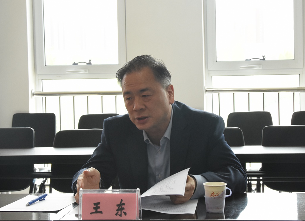 在听取学院领导班子就办学基本情况、党史学习教育活动开展、疫情防控、安全稳定、学院转隶和院办企业脱钩改革等工作进展汇报后,王东对学院近年来取得的成绩给予了充分肯定,对存在的困难进行了分析和探讨。