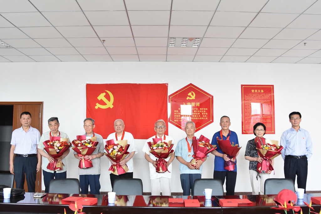 6月24日上午,学院“光荣在党50年”纪念章颁发仪式暨座谈会在综合楼523会议室举行。党委副书记、院长张震云,党委副书记邹本贵,党委委员、副院长陕荣善,7位50年以上党龄的老党员、部分党务干部和学生代表参加本次颁发仪式。仪式由邹本贵同志主持。