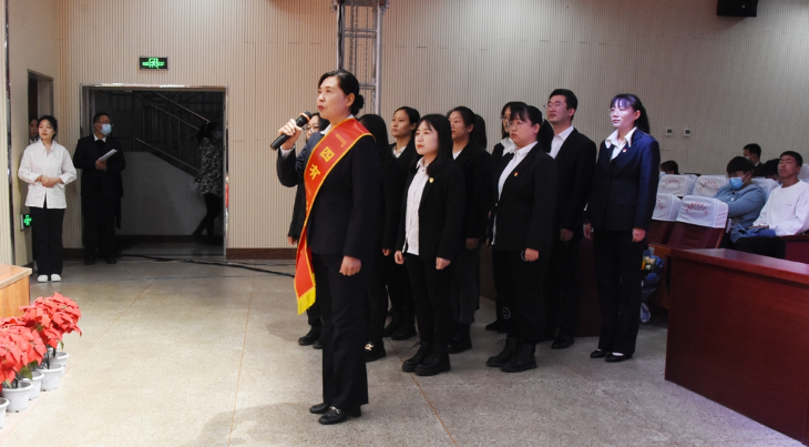 工商管理系主任李朝霞副教授带领新入职教师诵读了《新时代高校教师职业行为十项准则》。