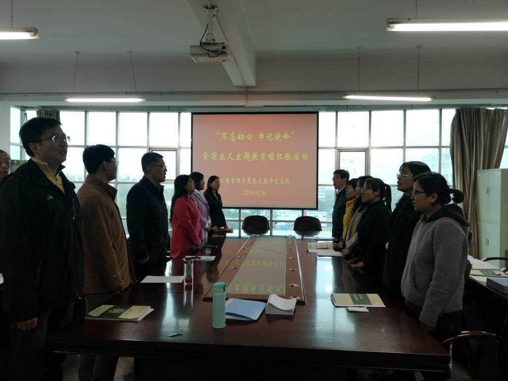 为了深入开展“不忘初心、牢记使命”主题教育,讴歌改革开放,赞颂祖国伟大,宏扬民族精神,继承革命先辈们的优良传统,工商管理系党总支教师党支部开展了“唱红歌,颂祖国,激斗志”主题教育活动,系党总支副书记、系主任、教师党支部书记李朝霞及全体支部党员积极参加了此次主题教育研讨会。