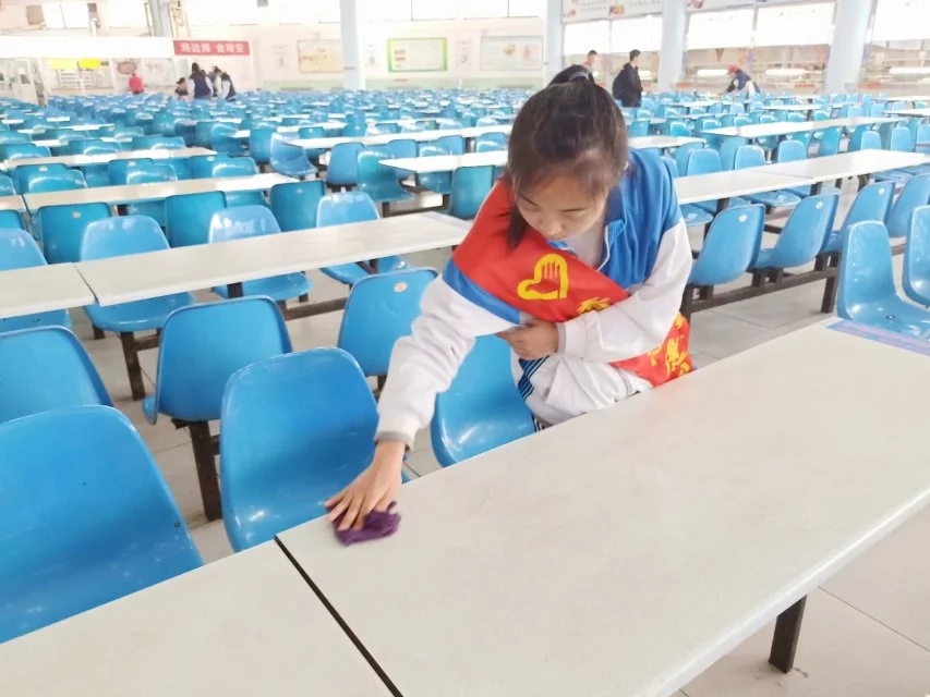 志愿者们进入餐厅后,便迅速行动起来,帮助清洁人员清扫桌面上的残羹剩饭,统一倒入指定的剩饭剩菜处理处;将桌上残留的废纸、空瓶子倒入垃圾桶,并与食堂工作人员一同打扫地面,为同学们营造了一个舒适整洁的用餐环境。活动过程中,志愿者们积极工作,与食堂工作人员相互配合,相互帮助,大大提高了食堂的清扫效率,让清洁工作更加顺利有效。