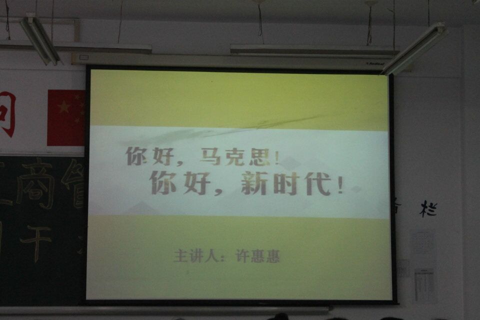 2018年11月21日下午,工商管理系学生党支部书记许惠惠为青马学员开展了“你好马克思,你好新时代”主题讲座。