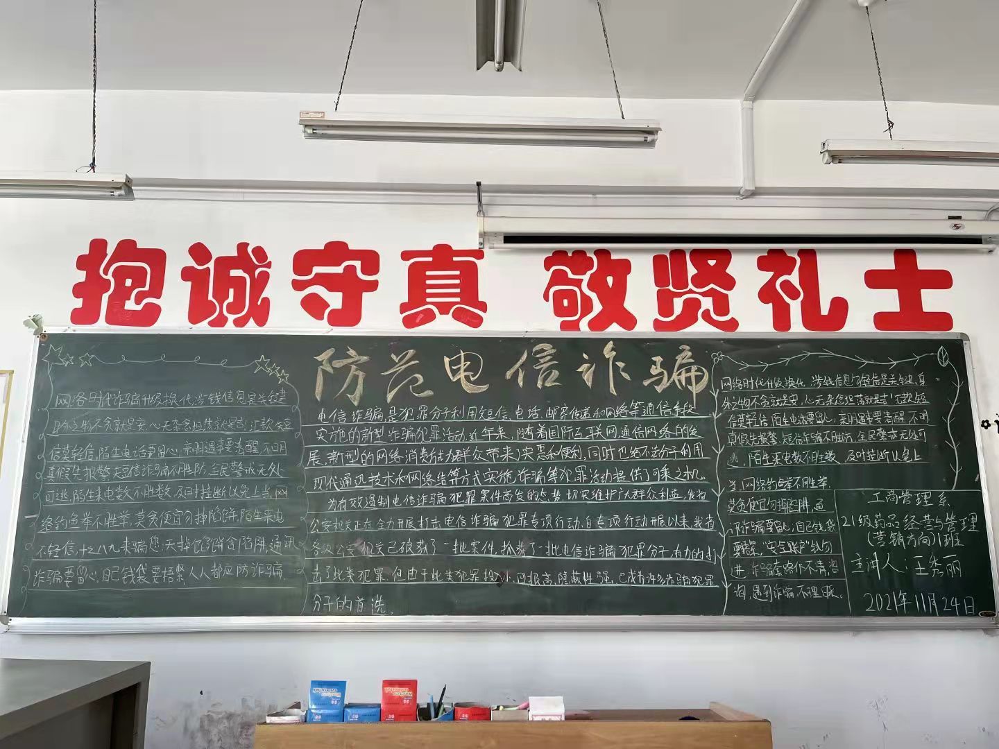 为积极响应学院关于“谨防电信诈骗,注重校园安全”的通知,提高同学们对电信诈骗的辨识能力和安全防范意识,营造更加安全的校园氛围,11月24日,工商管理系组织各团支部开展“防范电信诈骗”主题团课。