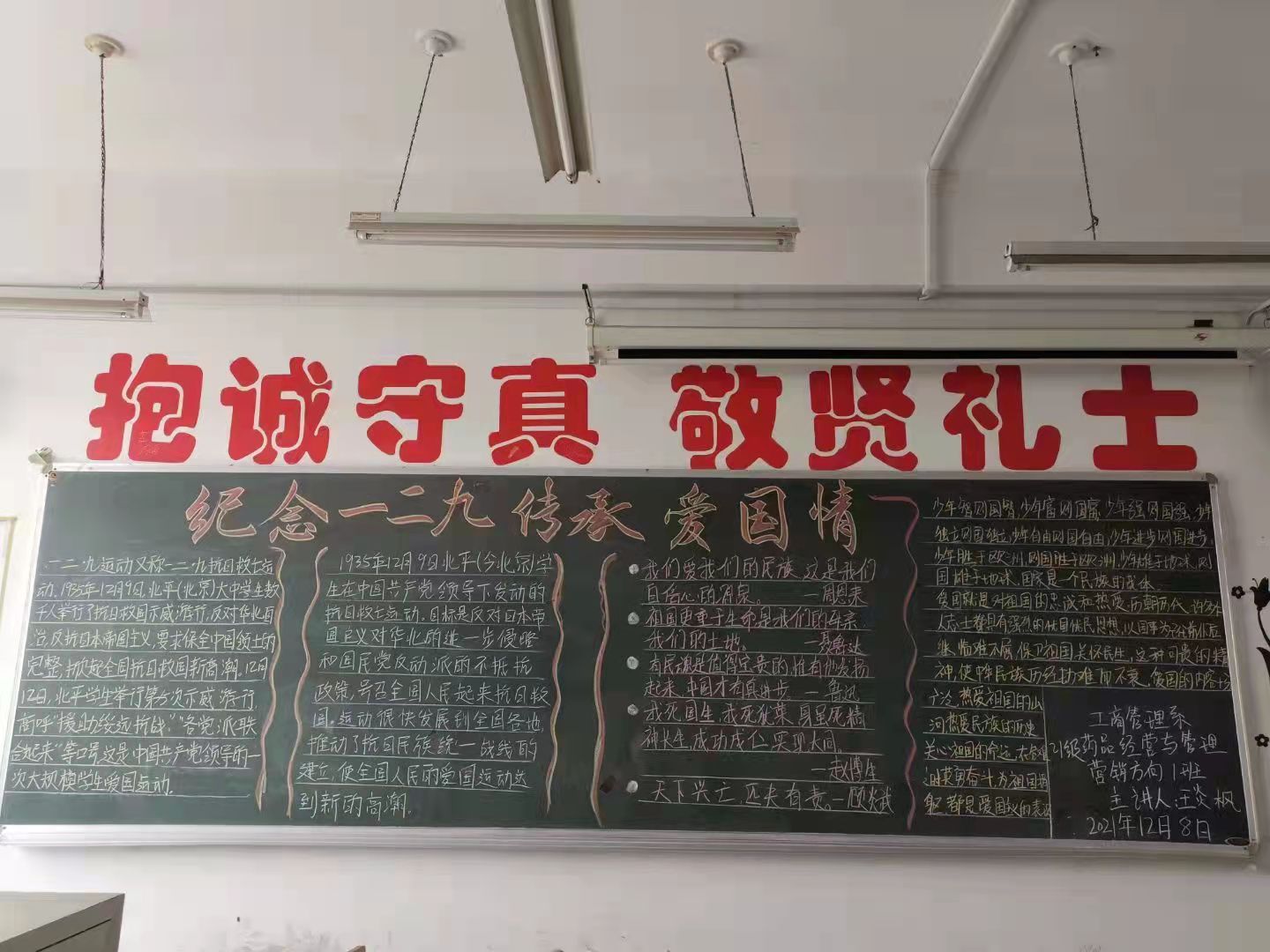 2021年是一二九运动八十六周年。为进一步加强青年学生的思想教育引领,弘扬爱国精神。12月8日,工商管理系组织各团支部开展“纪念一二九 传承爱国情”主题团课。