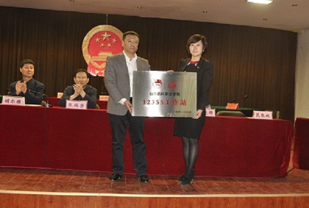 5月14日下午,山西省12355工作站授牌仪式在我院文体中心举行。团省委青少年维权中心主任张华,院党委书记张瑞芳同志,院党委委员、副院长胡尔雅同志,学院相关部门、单位负责同志、学院12355工作站全体成员和部分学生志愿者参加了授牌仪式。
