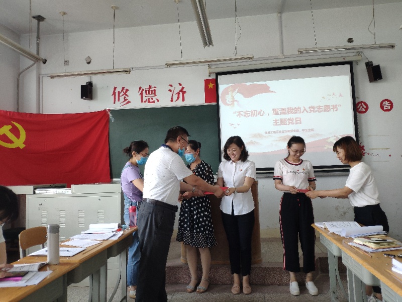 器械工程系党总支教师、学生党支部于6月23日下午联合开展“不忘初心,重温我的入党志愿书”主题党日活动。活动以题为“如何做一名新时代合格的共产党员”的生动党课开始,接着,全体党员同志通过联系个人思想和工作实际重温入党志愿书,回顾入党初心,回忆入党故事,分享了入党多年的感想和体会。随后,全体党员为6月份入党的党员同志们过政治生日,并发放生日贺卡,赠送学习书籍。同志们纷纷表示感谢党组织的培养和锻炼,以后将在各自岗位上积极工作、模范带头,为教育工作做出应有的贡献。