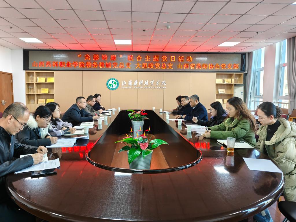 为深化廉洁文化建设,筑牢党员拒腐防变思想防线,11月24日下午,教务教辅党总支、大思政党总支联合山西省药师协会党支部举办“崇廉尚洁知行合一—‘光影铸廉’主题党日活动”。活动以“观、学、研、行” 为主线,分实地研学与集中会议两个阶段开展,凝聚起共建“清廉学校”“清廉协会”的思想共识与行动合力。