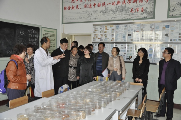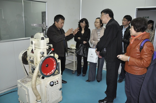 会后,参会人员参观了学院的中药认药室、标本厅、GMP车间以及标本园。