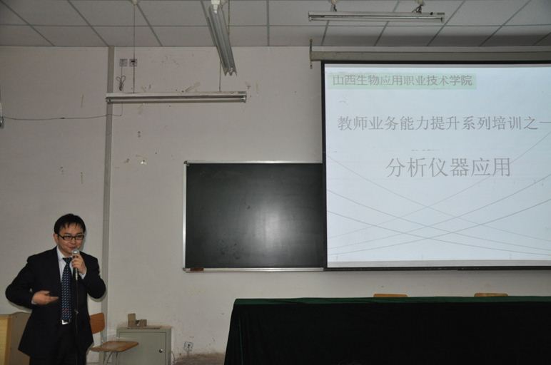 为加强学院“双师型”师资队伍建设,切实提高专业教师分析仪器使用、维护能力,根据《山西生物应用职业技术学院2012年度教师素质提升工程培训方案》要求,2012年4月24日下午两点,邀请岛津公司资深工程师在学院二楼二阶举办了