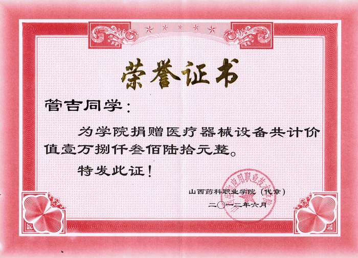 仪式上,张震云副院长为管吉同学颁发了捐赠证书,并对师生提出了希望,希望毕业生在今后有所作为;希望老师要正视已有成绩、充分发挥优势、争取新成就;同时要注重教师队伍建设,尤其是要加强对青年教师的培养,加快专业建设步伐;还要进一步深化校企合作,拓宽合作面。