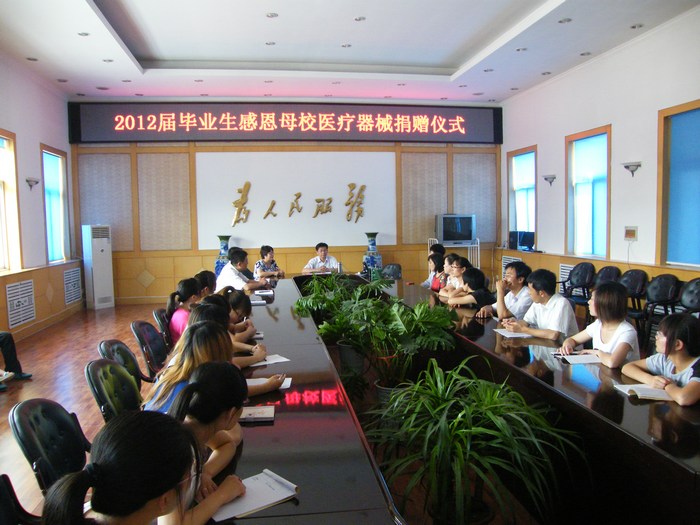 2012年6月19日上午,学院举行了2012届毕业生感恩母校医疗器械捐赠仪式。副院长张震云、教务处处长张虹以及生物制药工程系领导出席了仪式,部分学生代表也参加了该仪式。