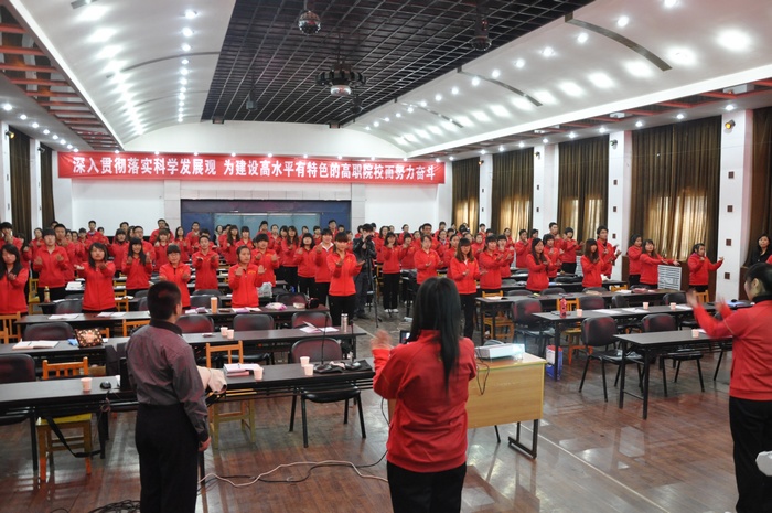 11月3日上午,教务处组织部分专业教师和康美徕店长强训班全体学员,在文体中心聆听“金牌店长是如何炼成的”专题报告。