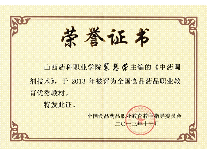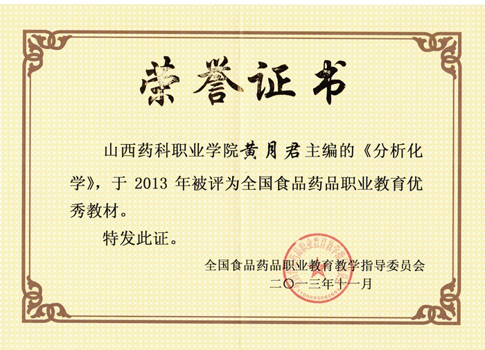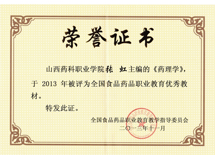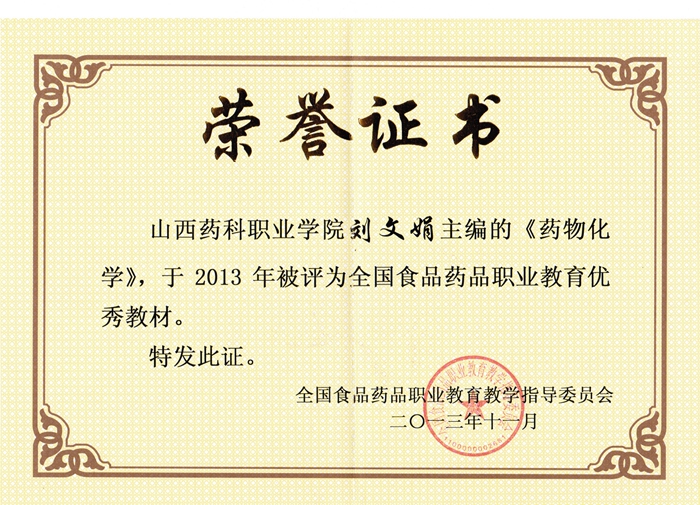 会上公布了2013年全国药品食品职业教育优秀教材评选结果并进行了颁奖。大会共评选出28部优秀教材,其中我院教师主编的《中药鉴定技术》、《药理学》、《中药调剂技术》、《药物化学》、《中药制剂检验技术》、《分析化学》、《仪器分析技术》7本教材名列其中。