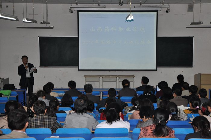 会上,白而力、胡清宇、张府君三位老师应用大量的图片,从不同角度分别将个人在药品质量检测技术专业骨干教师国家级培训的学习收获、感悟思考等内容进行了汇报交流。