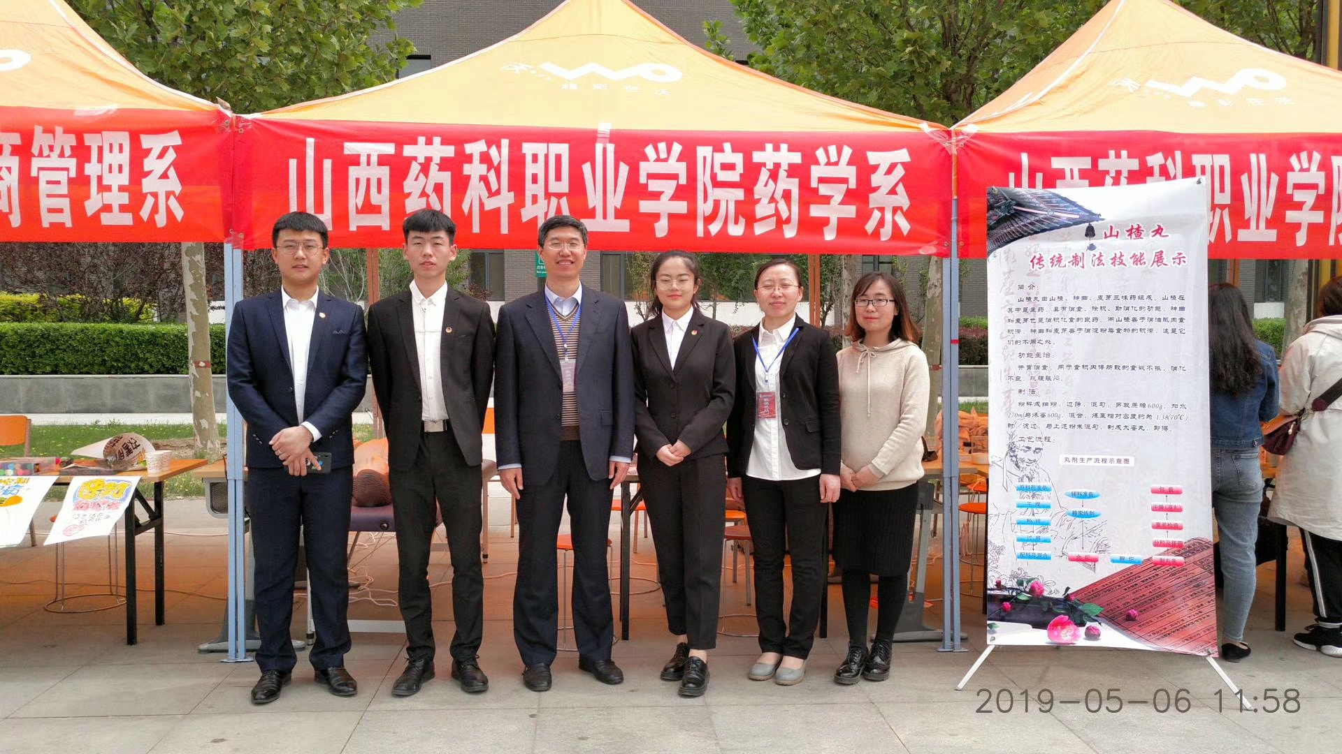 在活动现场,中药系师生展示了中药香囊、艾条传统制作工艺、中药饮片调剂传统技艺;制药工程系展示了山楂丸、片剂、苦瓜颗粒、磺胺胶囊等传统剂型和黄芩手工皂、洗手液、保湿乳液等洗护用品实训作品,学生还进行了牛奶手工皂、保湿乳液的职业技能展示;药学系进行了心肺复苏操作演示,现场开展了血压测量等便民服务;工商管理系学生现场绘制了POP海报并进行了药品陈列;器械工程系展示了单片机控制LED点阵显示、小机器人、小音箱和收音对讲机等学生实训作品;食品工程系展示了烘焙、蛋糕裱花等学生西点创意作品,现场演示了蔬菜中农药含量残留的检测技术。师生们的现场展示活动吸引了现场领导和众多兄弟院校师生的驻足观看,并纷纷参与了互动,当中药系学生按省政府副秘书长丁纪岗同志的要求准确完成10克药材的调剂操作时,在场领导和围观的群众为学生们精湛的技艺和扎实的专业素养表示了赞赏。