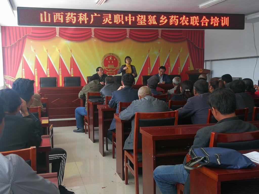 5月6日、7日,党政办公室相关人员和中药系蔡翠芳教授一行人员赴广灵开展了教育对口帮扶,为广灵职中师生专题讲座中草药专业前景展望,对广灵望狐乡药农进行了中草药种植培训。
