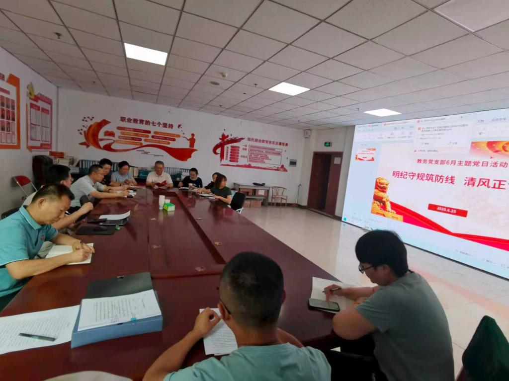 为持续推动作风建设走深走实,进一步引导党员干部深化对中央八项规定精神的理解与践行,2025年6月25日下午,教务党支部在综合楼一层111会议室组织开展了“明纪守规筑防线 清风正气润初心”主题党日活动暨支部书记专题党课。支部全体党员参加学习。