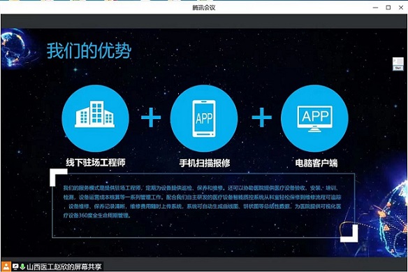 赵欣经理详细介绍了“现代学徒制”人才培养模式的内涵及现代学徒制的发展历程。随后介绍了山西医工医疗设备服务有限公司组织架构、项目成员、发展理念、企业文化及企业发展历程、规模、前景等同学们关心的内容,并结合具体实例从国家政策导向及行业发展现状方面进行了深入浅出的分析介绍,解答了师生的疑惑并热忱邀请同学们到公司参观学习。