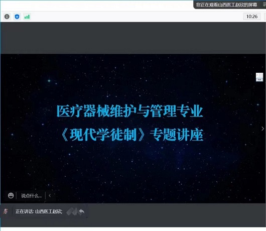 通过这次专题讲座,同学们对“现代学徒制”及山西医工医疗设备服务有限公司有了更加深入的认识,增强了专业学习的兴趣和未来职业发展的信心。