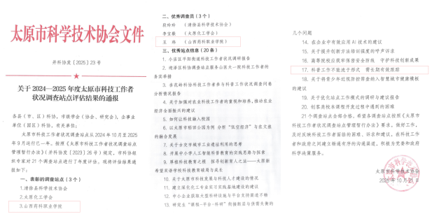 近日,太原市科学技术协会发布了《2024—2025年度太原市科技工作者状况调查站点评估结果的通报》(并科协发〔2025〕23号),…[详细]