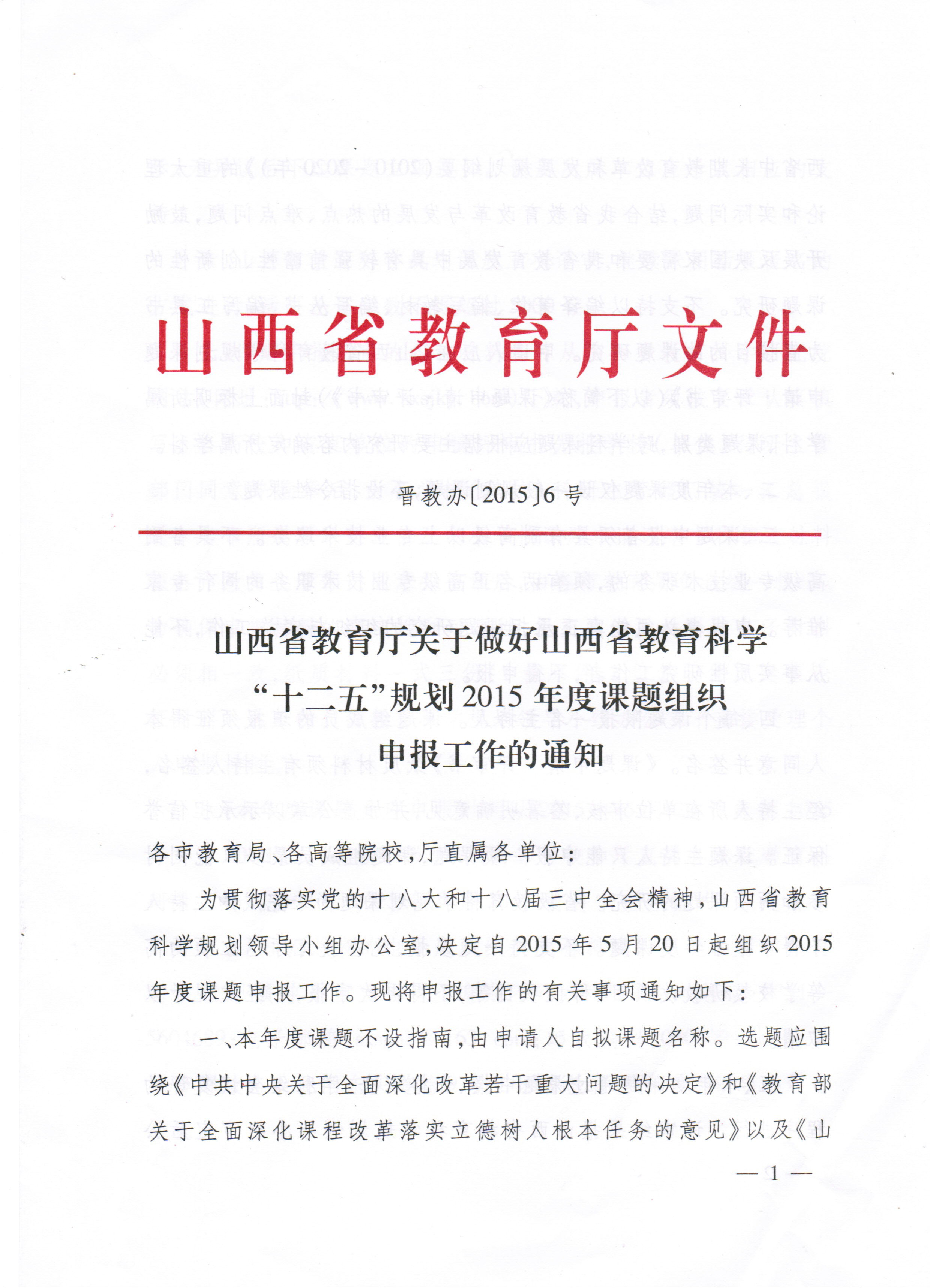 关于山西省教育科学“十二五”规划2015年度课题申报工作的通知