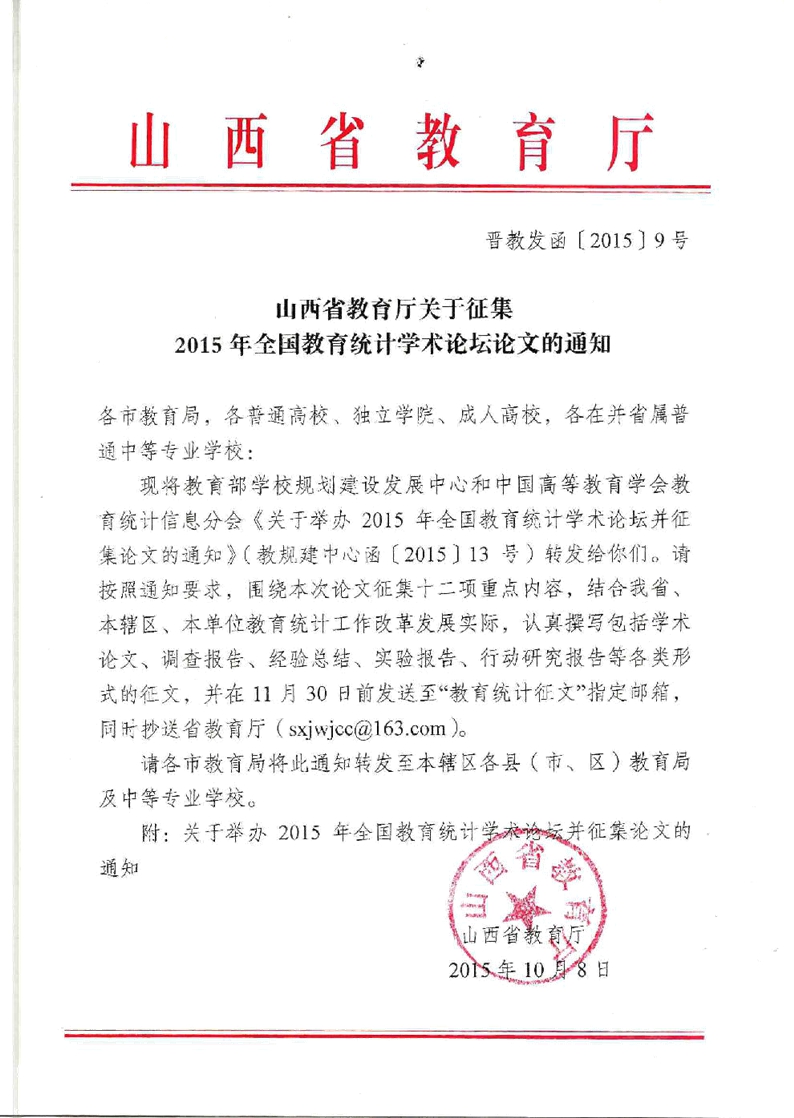 附件. 山西省教育厅关于征集2015年全国教育统计学术论坛论文的通知