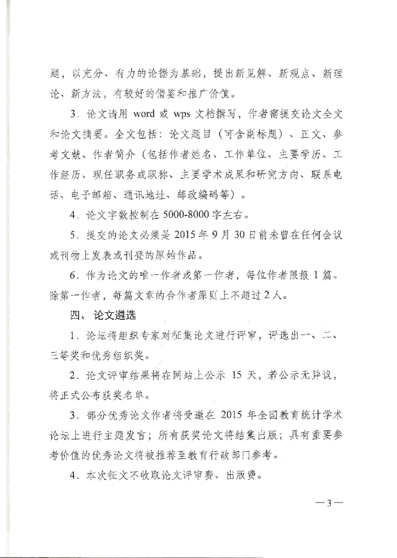 关于转发“山西省教育厅关于征集2015年全国教育统计学术论坛论文的通知”的通知