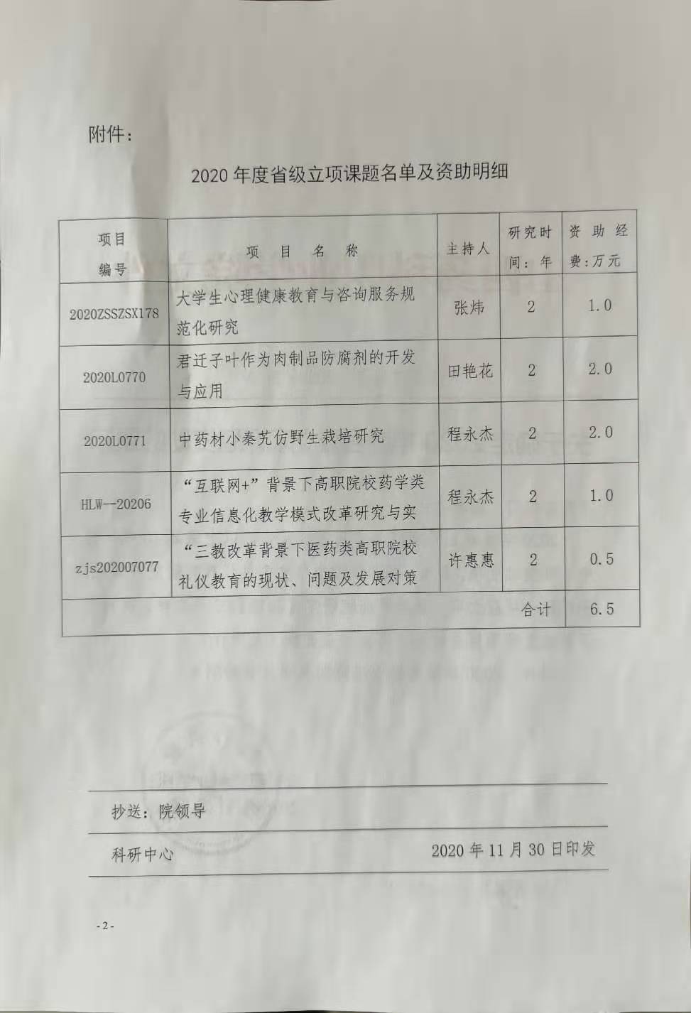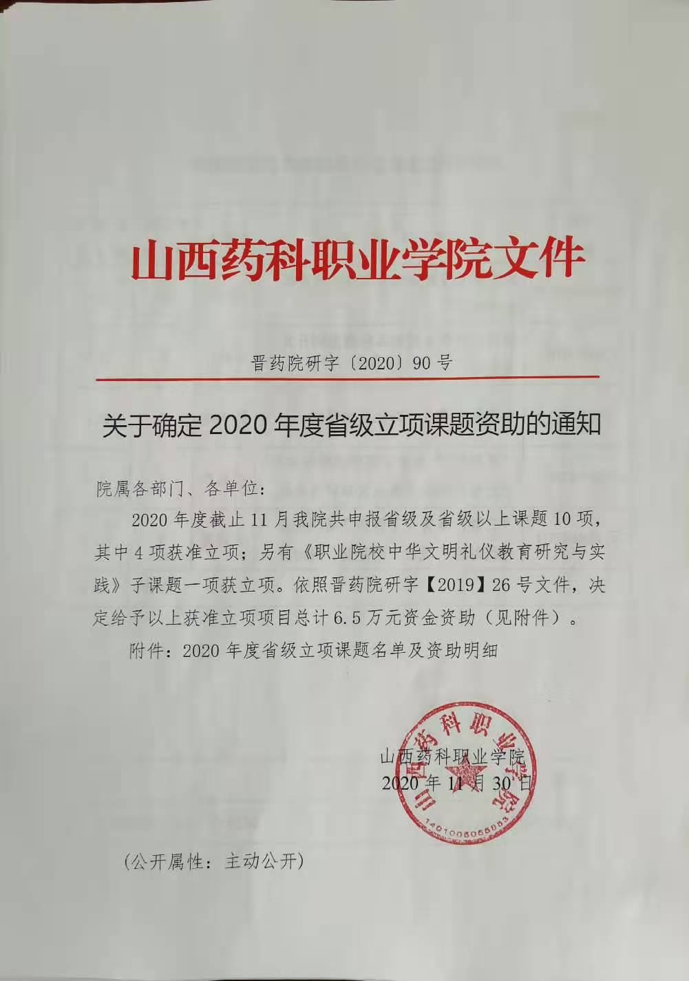 关于确定2020年度院级课题(第二轮)立项资助的通知