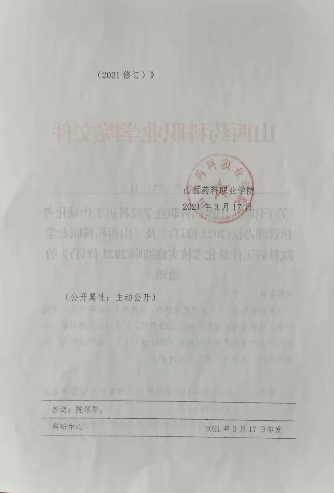 关于印发《山西药科职业学院科研工作量化考核管理办法(2021修订)》及《山西药科职业学院科研工作量化考核实施细则(2021修订)》的通知