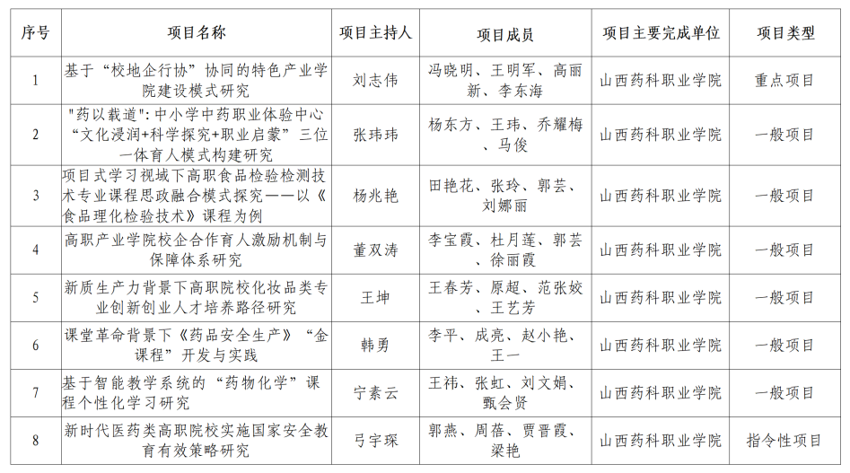 按照《山西省教育厅关于做好2025年度职业教育教学改革与实践研究项目申报工作的通知》(晋教职成函〔2025〕5号)文件要求,学院组织开展了2025年度山西省职业教育教学改革与实践研究项目的推荐评审工作,经个人申报,单位推荐,专家评审,拟推荐以下项目进行申报。现予以公示,公示时间为2025年6月19日-2025年6月26日。